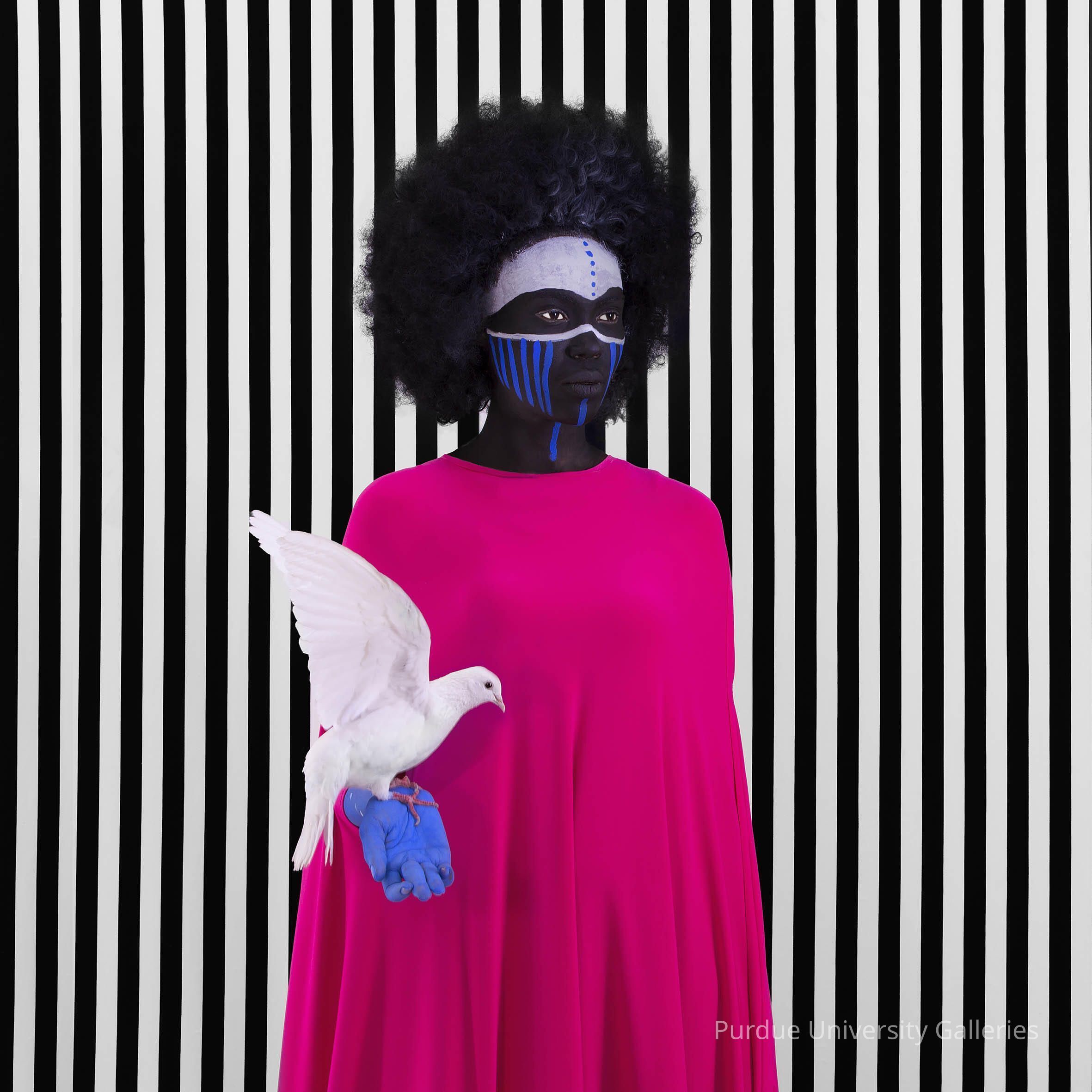 Muluneh takes inspiration from traditional forms of adornment and body painting from across Africa, as well as documentary photographs of Ethiopia from the nineteenth and twentieth centuries. She uses her works as a visual diary, expressing her inner feelings and exploring the dualities of sorrow and joy, pain and beauty.