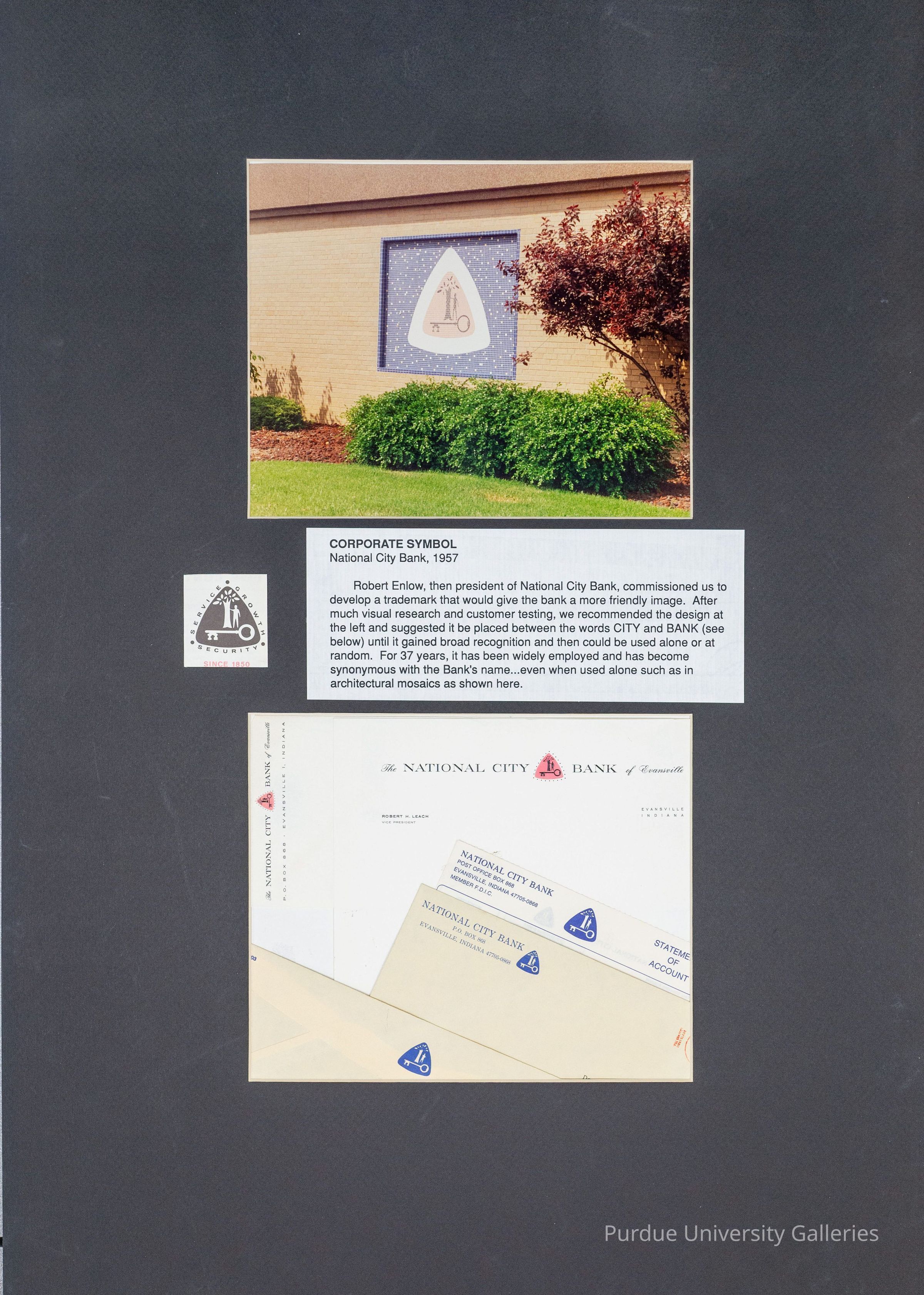 a few photos and physical envelopes that show the corporate logo for the National City Bank of Evansville Indiana. the logo is of a man touching a tree and a key is underneath both of them.Acquisition