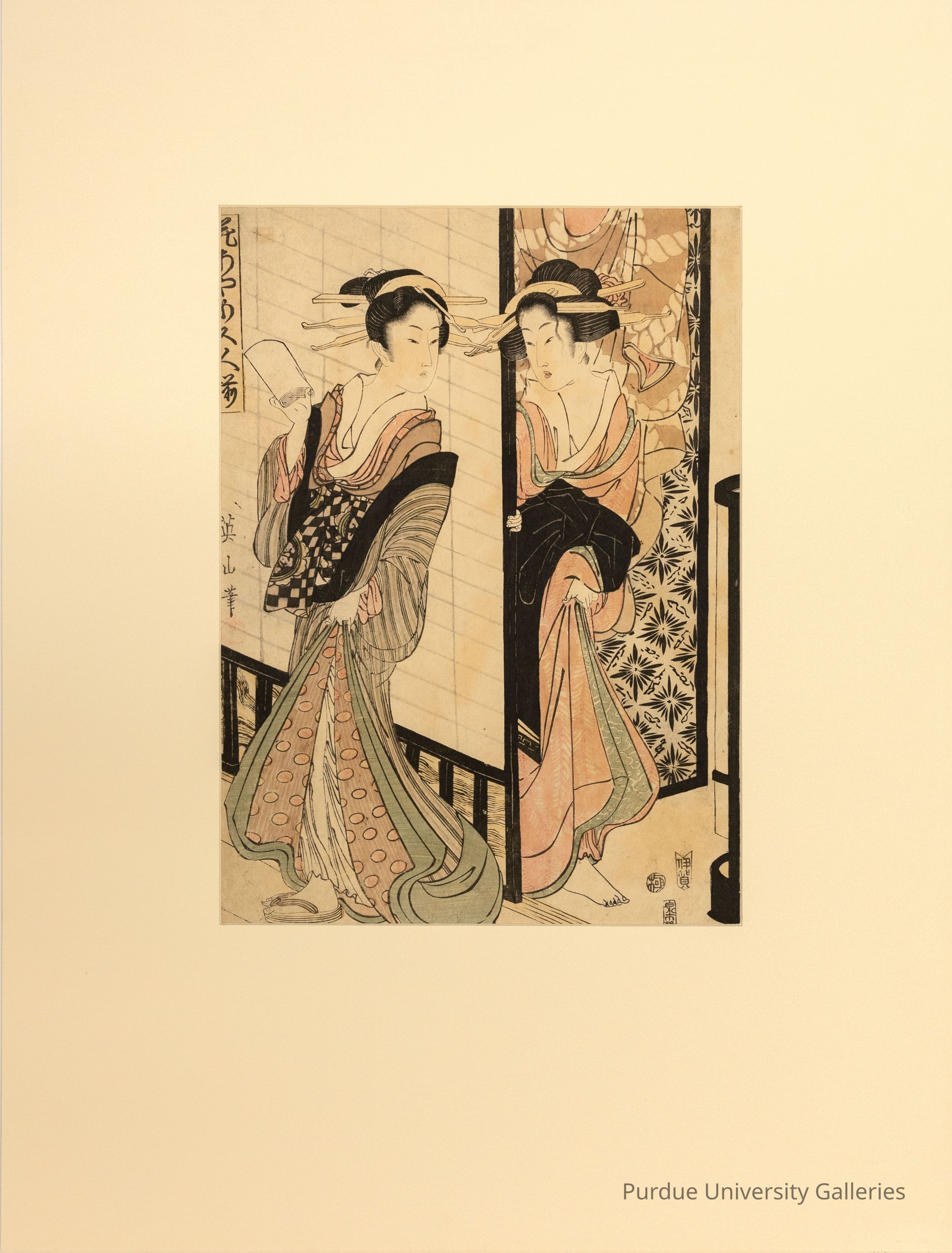 For over two hundred years, 1640 to 1853, the ports of Japan were virtually closed to the outside world. During this period of isolation a unique and technically unrivaled art emerged--the Ukiyo-e woodblock print. Ukiyo-e, “pictures of a floating world,” evolved to meet the demands of a rising merchant class for an an that reflected its own interests and amusements. The subjects depicted were Kabuki theater, famous courtesans, genre scenes and famous sights.