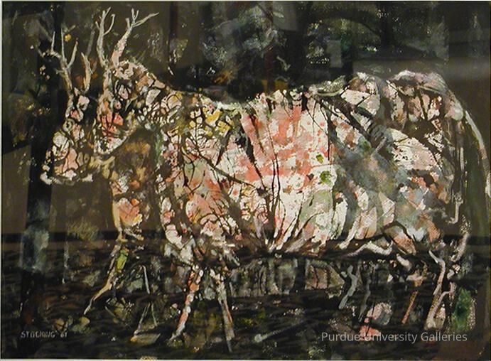 Curtis M. Stocking (1914-1981) was a professor of Fine Arts at Purdue University from 1947 until the early 80’s. He recieved both his Bachelors and Masters of Fine Arts from Ohio State University. During his years at Purdue he became a celebrated educator, working with not only the Creative Arts department (now Visual and Performing Arts), but also with the Engineering and Agriculture schools, participating in many seminars dealing with creativity. He also did work as a consultant in creativity for the University of Illinois, the Pfizer Drug Corp., Standard Oil, the American Medical Association, and the Universities of Chicago and Buffalo. He was an accomplished painter, exhibiting nationwide in both private and public collections.