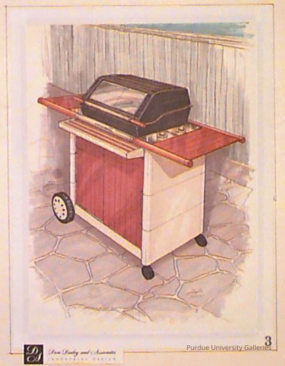 an industrial design drawing for an outdoor grill with wheelsType of Drawing