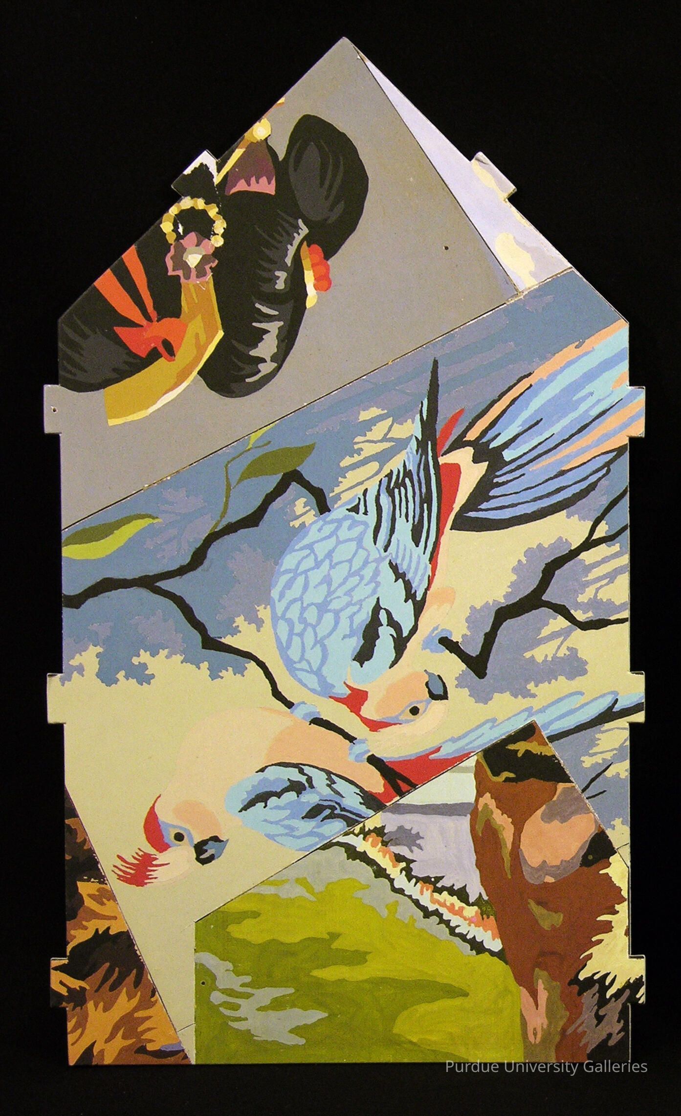 Don Baum (1922- 2008) moved from Michigan’s Upper Peninsula to Chicago in the 1940’s to study art history at the University of Chicago. Don was instrumental to what has become known as the Chicago School when he became the exhibitions director at the Hyde Park Art Center from 1956 to 1972. In the late 1950’s he and a group of fellow artists, including H.C.Westermann and Leon Golub became known as the “Monster Roster”. A few years later he hosted the first ”Hairy Who” exhibitions that featured the work of Jim Nutt, Gladys Nilsson, Karl Wirsum. He also exhibited the later Chicago Imagists, including Roger Brown, Ed Paschke, Barbara Rossi and Christina Ramberg. Domus is the last series of works created by Baum; they featured found objects turned into houses.