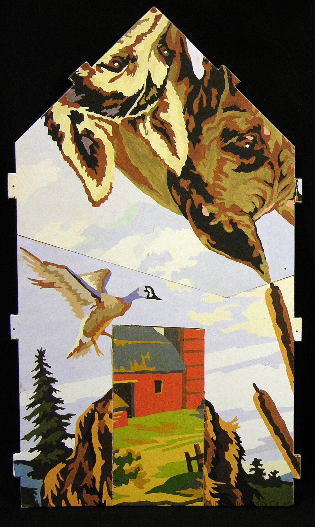 Don Baum (1922- 2008) moved from Michigan’s Upper Peninsula to Chicago in the 1940’s to study art history at the University of Chicago. Don was instrumental to what has become known as the Chicago School when he became the exhibitions director at the Hyde Park Art Center from 1956 to 1972. In the late 1950’s he and a group of fellow artists, including H.C.Westermann and Leon Golub became known as the “Monster Roster”. A few years later he hosted the first ”Hairy Who” exhibitions that featured the work of Jim Nutt, Gladys Nilsson, Karl Wirsum. He also exhibited the later Chicago Imagists, including Roger Brown, Ed Paschke, Barbara Rossi and Christina Ramberg. Domus is the last series of works created by Baum; they featured found objects turned into houses.