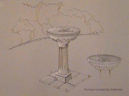 Greek column-inspired sundial with a grill underneath. Grill is shown as a separate image.Lexicon