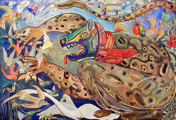 Detailed mixed media piece full of marker, paint, pastel and many more mediums. The piece is full of whimsical motifs of birds, fish and leopards.Type of Drawing