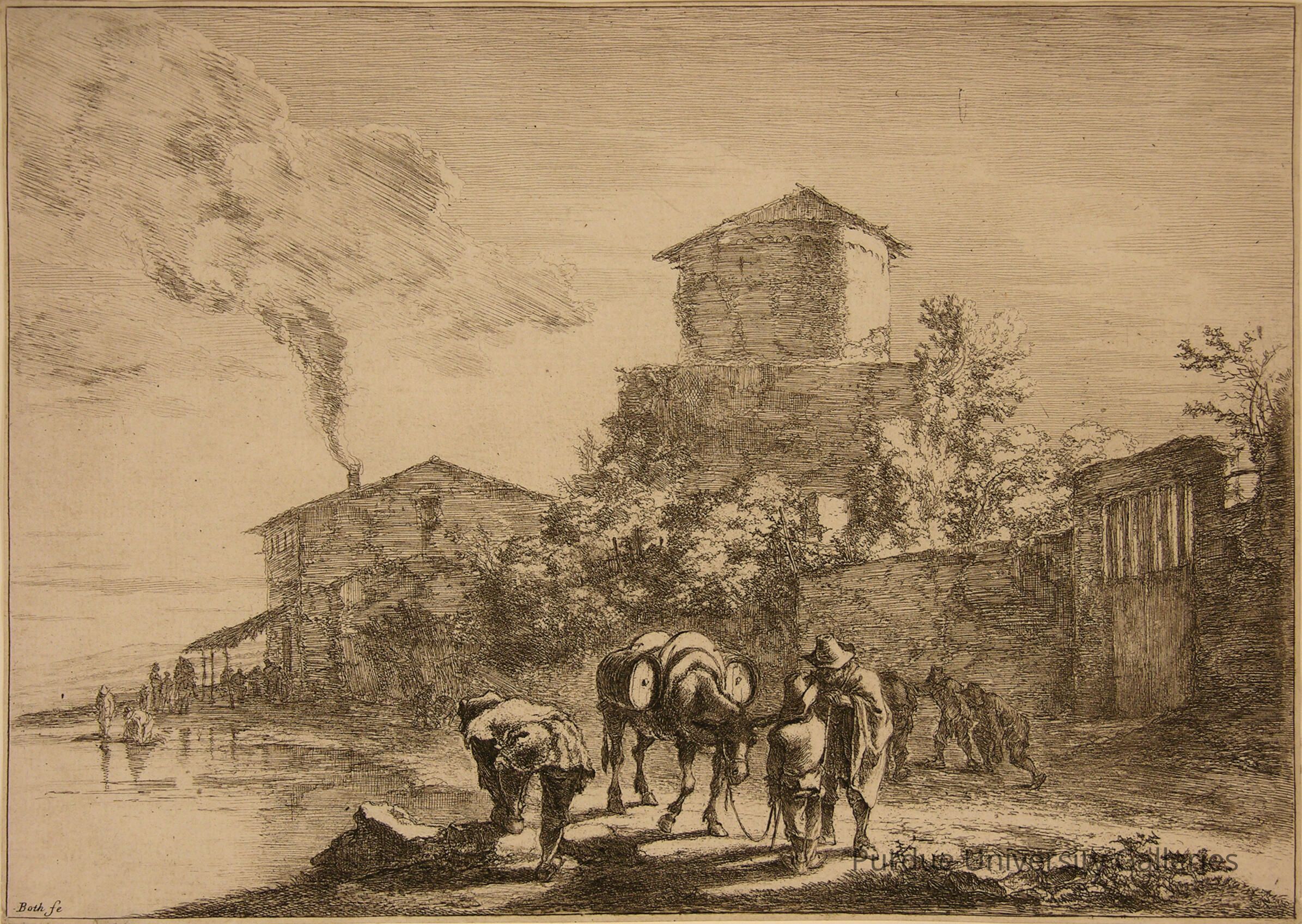 comes illustrate landscapes with small scenes of humans and animals interacting. While most of Both’s paintings are done in the grand manner of the Italianate artists, his prints are more varied in subject, with genre scenes especially favored.