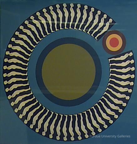 "A self-taught artist, Trova's early efforts were influenced by Expressionist painters, Dubuffet and DeKooning. He established his own identity in the early 1960s with the Falling Man series which he developed in paintings, graphics, assemblage, and sculpture for more than 10 years. Characteristic features of his prints from this series are the silhouette figures arranged in formal circles, and executed in dense, flat, primary colors that eliminate any sense of space.