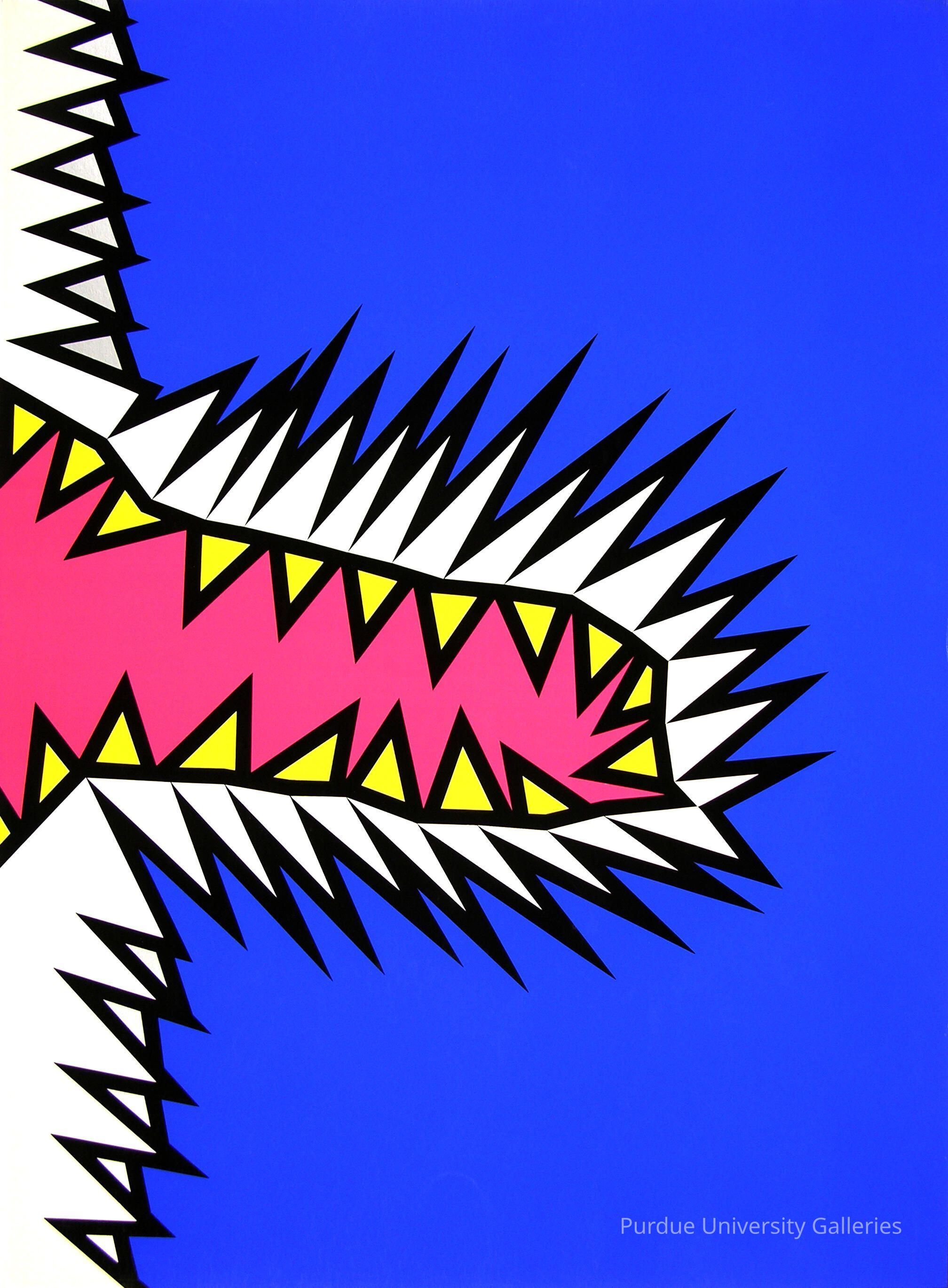 The present work reflects both the artist's formative years in abstract modernism and the step back from that art into the dispassionate ""cool"" of Pop Art. It has the energy of expressionist work and the bright, flat color and firm black outlines characteristic of Pop."