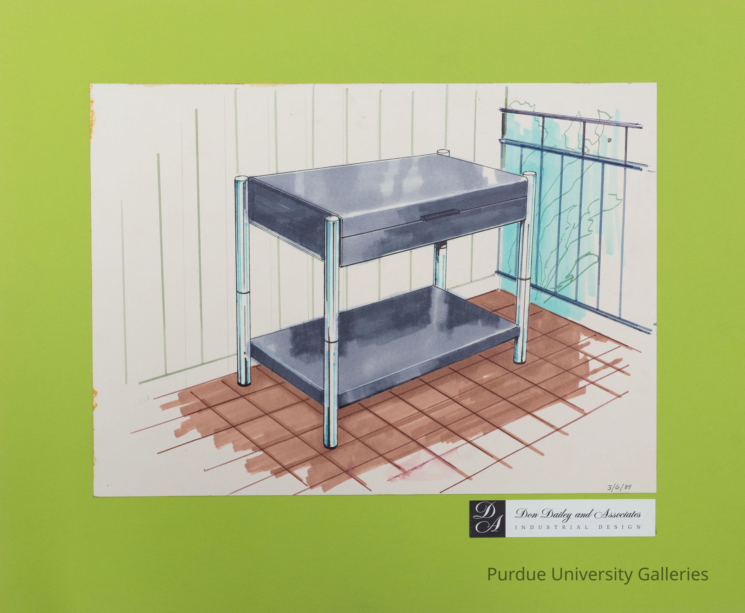a drawing of a desk/table that has an under area for storage of other objects. the desk/table seems to be able to be opened and have things stored in it.Type of Drawing