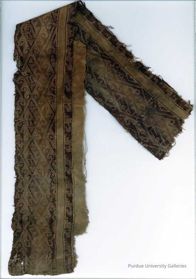 Textile fragment in warp-faced pick-up technique with bird motifs. Light to dark brown.