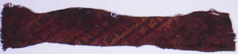 Textile fragment in multi-warp pick-up technique with bird motifs in red, gold, brown, and blue.Acquisition