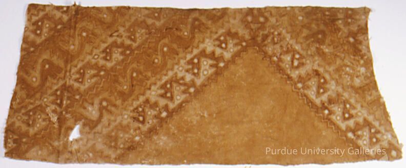 Textile fragment painted in bird and serpent motifs in brown. Neck yoke pattern.