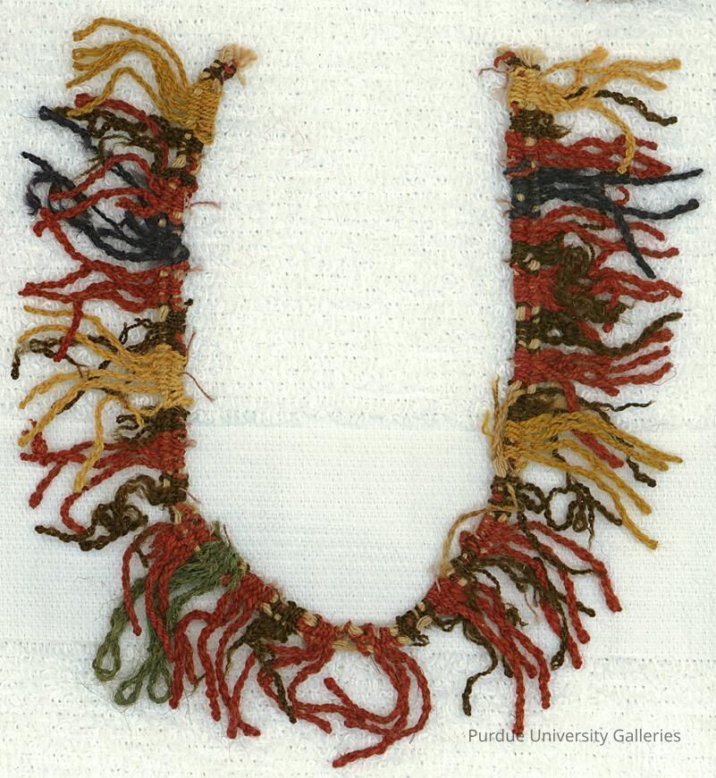 Fringe fragment in red, black, yellow, and blue.Acquisition