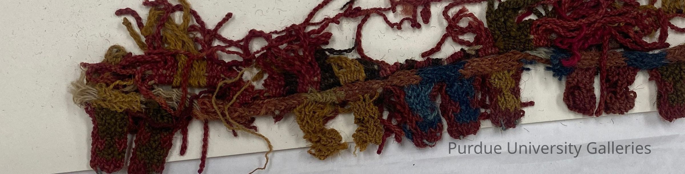 Border fragment in "needle knitting" technique with "lima bean" tabs and a fringe. Red, blue, yellow, and black.Acquisition