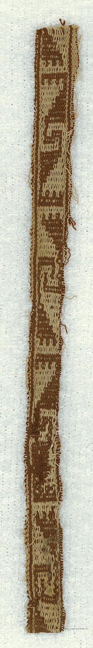 Textile fragment in warp-face pick-up, in wave motif. Brown and white.Acquisition