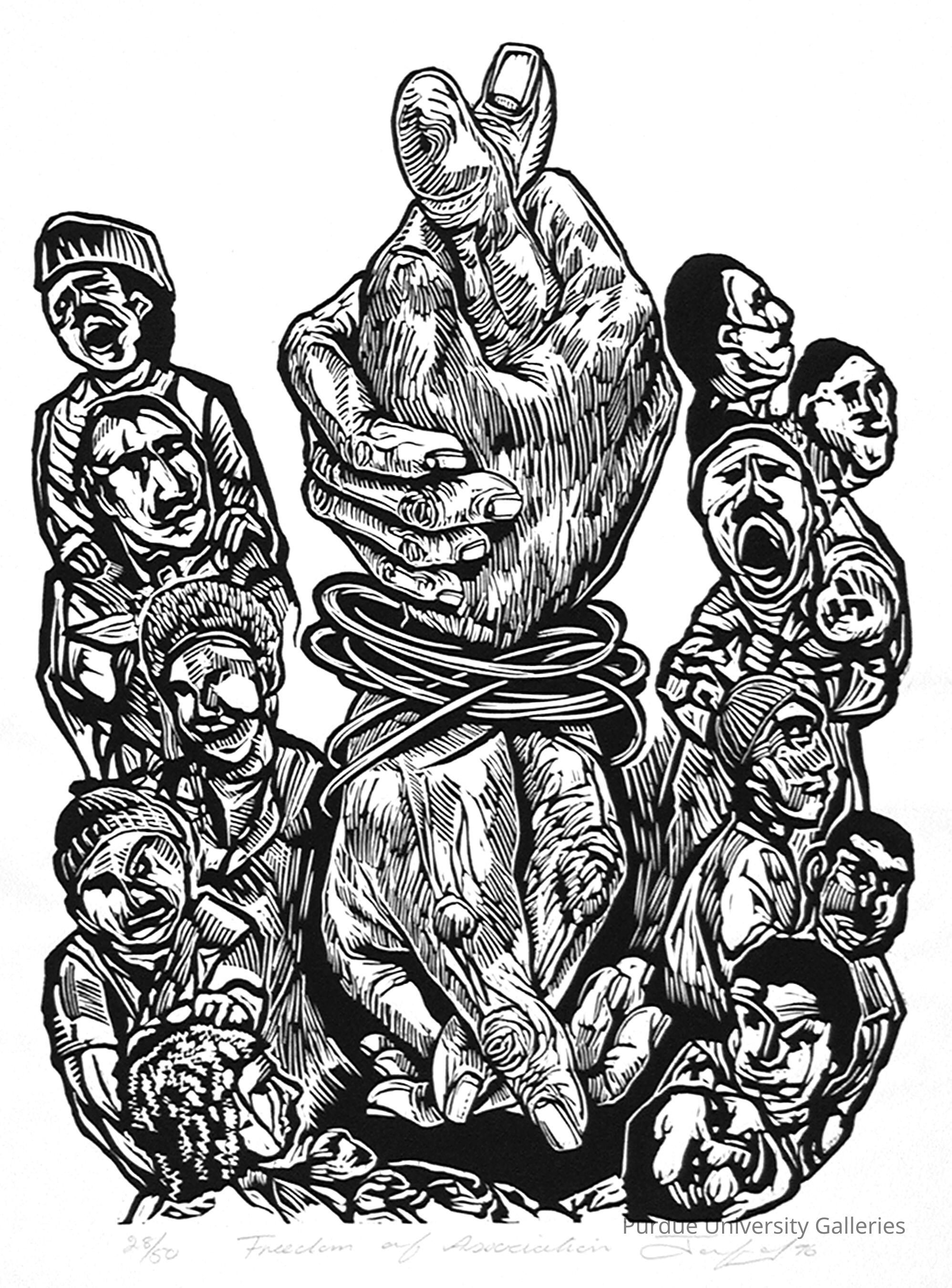 "(The Right to…) FREEDOM OF ASSOCIATION Jonathan Comerford Cape Town/Western Cape linocut “Everyone has the right to freedom of association.” "