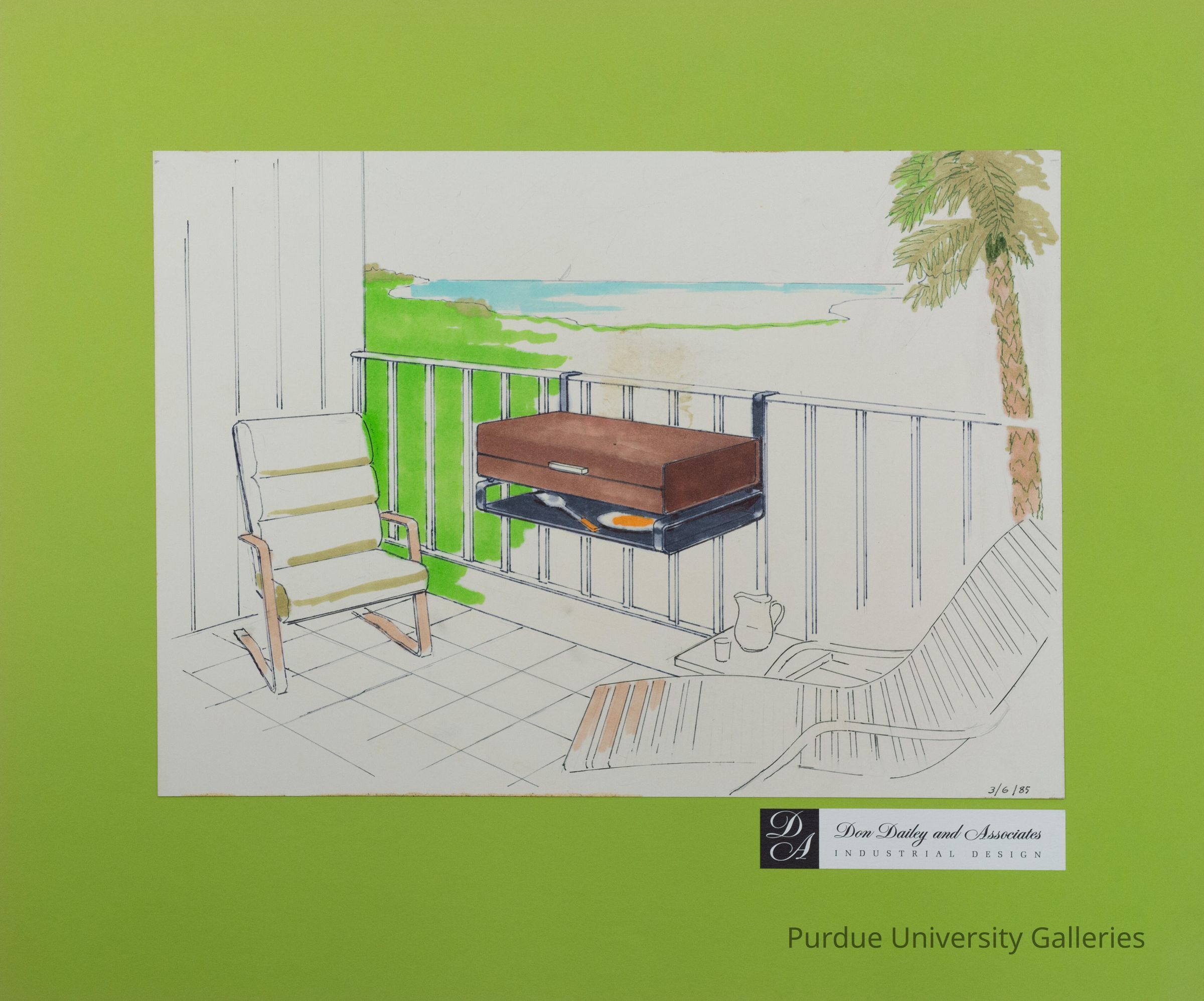 a drawing of what appears to be a hanging grill on a patio.Type of Drawing
