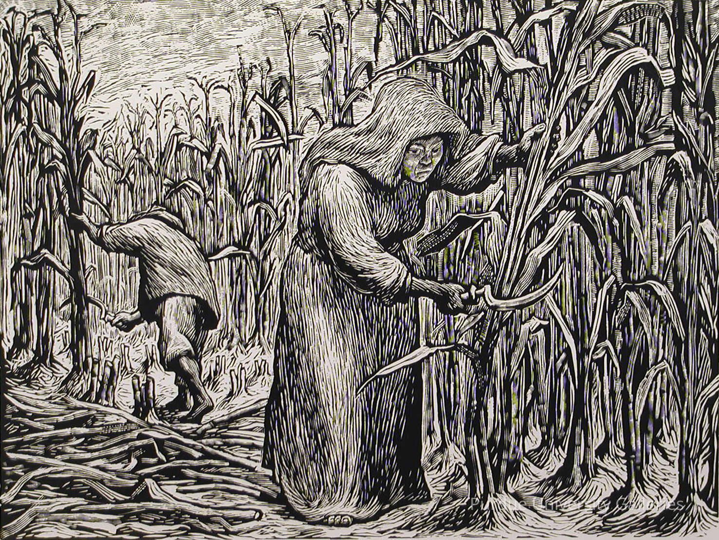 Harvest Leopoldo Mendez (1902-1969) Linocut, 1945 Leopoldo Mendez studied art at the prestigious Academy of San Carlos during the Mexican Revolution. While the Academy focused on traditionally European art forms and history, Mendez began exploring the art and culture of indigenous people. His artwork, like many of his colleagues, reflects a blend of traditional and contemporary and focuses on revolution and social justice Mendez was also a founding member of the Taller de Gráfica Popular (the People's Graphic Workshop, or TGP), which was a graphic arts studio focused on political activism and social justice movements. TGP was founded in 1937 in Mexico City after the disbanding of the Liga de Escritores y Artistas Revolucionarios (the league of Revolutionary Writers and Artists, or LEAR). The artists of the TGP worked primarily with printmaking, with an emphasis on linocuts and woodblock printing.