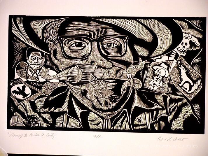 "Arceo has been active on the Chicago art scene for the past 3 decades. A graduate from the School of the Art Institute of Chicago, he is co-founder of Chicago's Galeria Ink Works & Mexican Printmaking Workshop, and also worked for the Mexican Fine Arts Center Museum. “In most cases my works evolve as a product of a spontaneous act. The act of drawing lines, on a surface, which evolve into shapes and forms defined in the spontaneous process of creating them. That is most often while creating art I do not depart from a specific idea or concept I want to address. Rather, it evolves out of the markings made spontaneously.” – René Hugo Arceo"