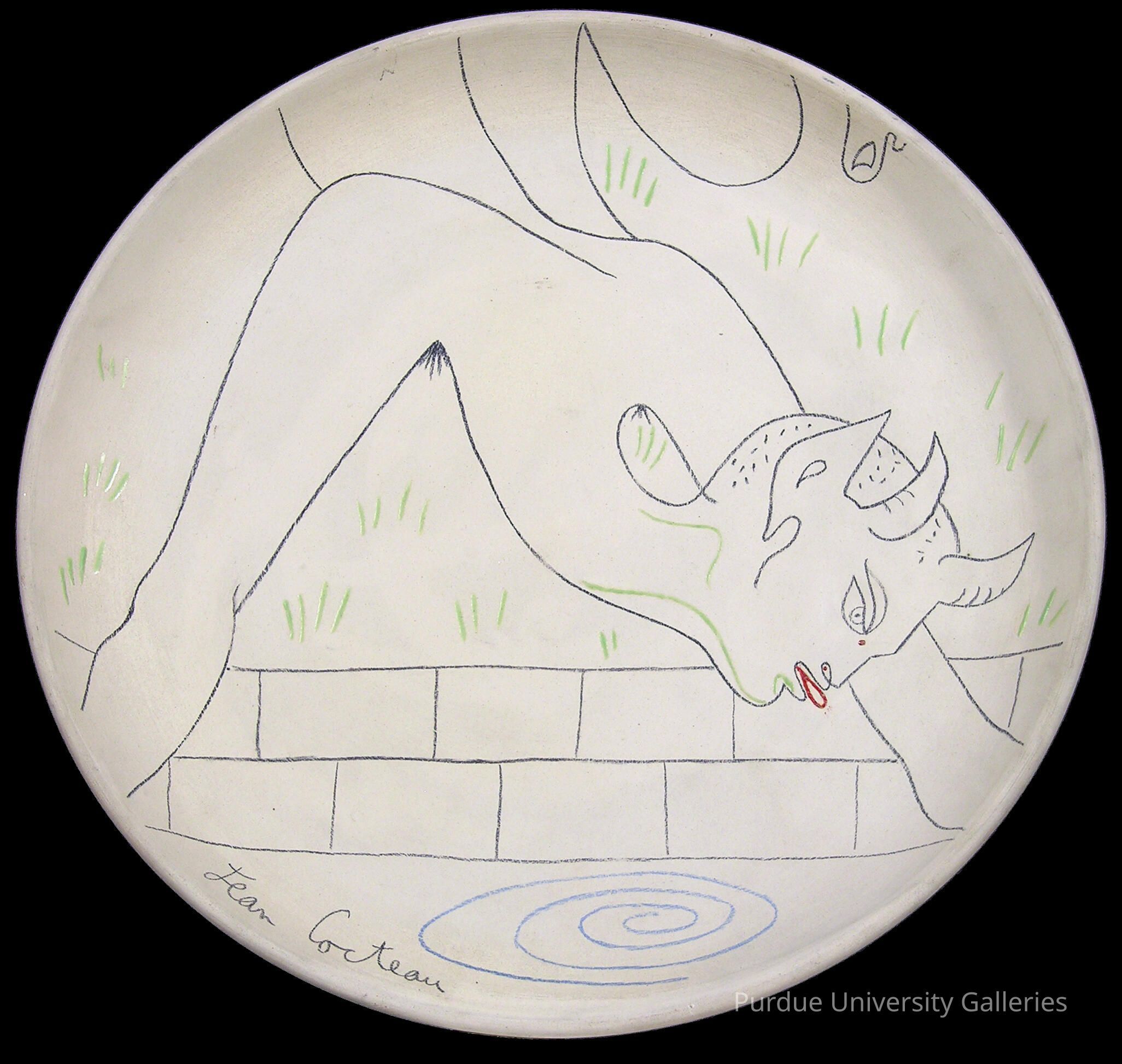 Jean Cocteau through (Marie-Madeleine Jolly, Paris) in 1958 {1}; purchased by Edmund and Ermanna Natke, Lincolnwood, IL; donated to Purdue University Galleries in 2000