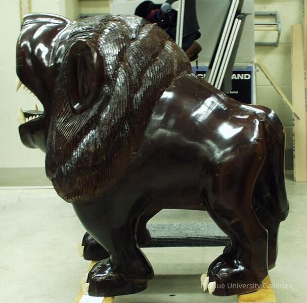 Note found in stray file "Presented to Purdue University in 1974, honoring A. H. Tichenor, former foreign student advisor. Presenters were Benjamin (BSEE '61) and Florence (BS '63) Egbosimba of Enugu, Nigeria. Hand carved by a Nigerian artist. The Lion has ivory eyes, teeth and claws."