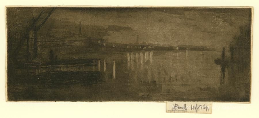"In 1884 the printmaker Joseph Pennell left Philadelphia, settling in London. There Pennell founded the Senefelder Club (1907) for lithographers. His illustrations appeared regularly in publications like The Graphic and The English Illustrated. Purdue has collected Pennell works inspired by his many excursions across Europe. Early on Joseph and his wife Elizabeth Robins befriended James McNeill Whistler, later publishing a two-volume biography on him (1908). Today the Library of Congress holds over one hundred volumes of articles, clippings, etc. (94,000 items) on Whistler from the Pennells’ research. Also a prolific a writer, Lithography and Lithographer and Etching and Etchers list among his best known. His texts often have strong, opinionated bias, as in The Jew at Home (1892), an anti-Semitic diatribe complete with racist caricatures – appalling today but not radical for their time. Before any other artist in the US, Pennell depicted modern urban environments – from growing Manhattan skyscrapers to construction of the Panama Canal. His twenty-five etchings of New York made during a visit in 1904 capture his initial sense of awe at the grandeur. Pennell almost single-handedly put the Art Student’s League in NY on the map while teaching etching there. He also served as critic for the Brooklyn Eagle and helped run the New Society of Sculptors, Painters, and Engravers. Joseph Pennell did more than any other artist of his time in establishing printmaking as an important medium worthy of “fine art” status."