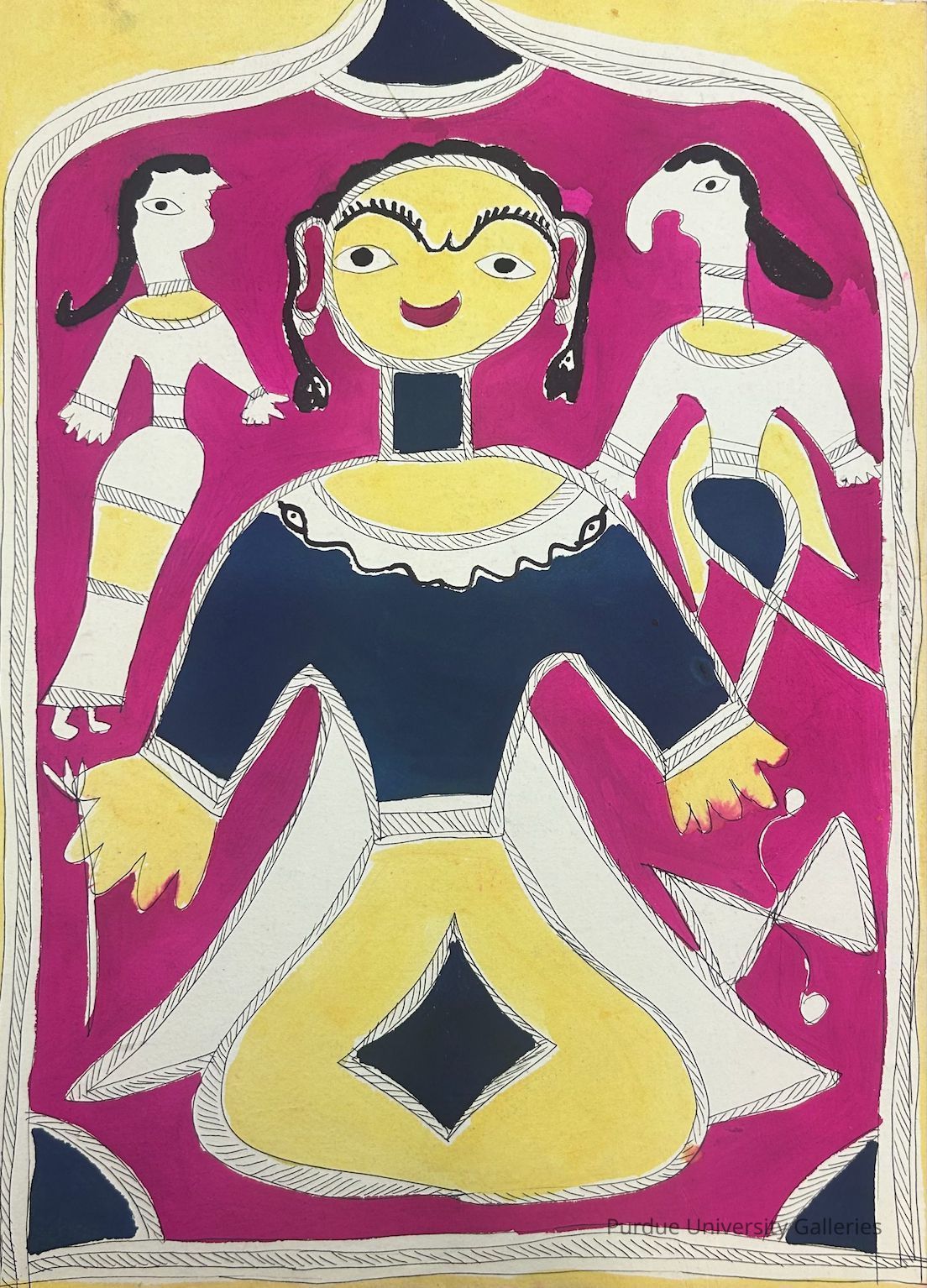 Traditionally produced by women, Madhubani/Mithila paintings are identifiable by bright colors, geometric patterning, and two-dimensionality.Inscription/Signature/Marks