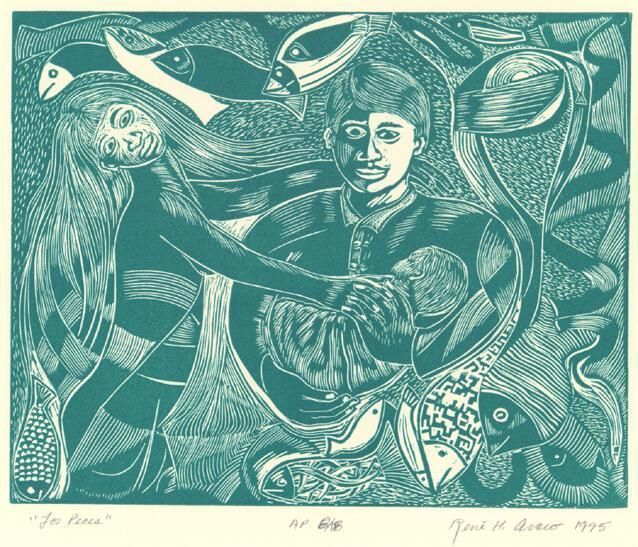 "Arceo has been active on the Chicago art scene for the past 3 decades. A graduate from the School of the Art Institute of Chicago, he is co-founder of Chicago's Galeria Ink Works & Mexican Printmaking Workshop, and also worked for the Mexican Fine Arts Center Museum. “In most cases my works evolve as a product of a spontaneous act. The act of drawing lines, on a surface, which evolve into shapes and forms defined in the spontaneous process of creating them. That is most often while creating art I do not depart from a specific idea or concept I want to address. Rather, it evolves out of the markings made spontaneously.” – René Hugo Arceo"