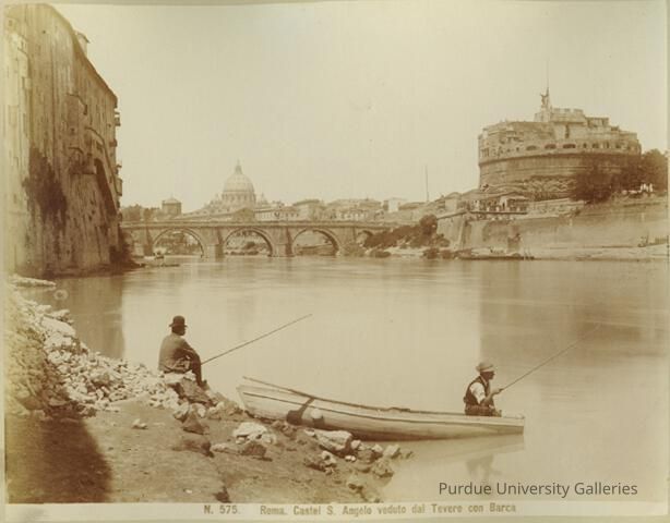 No. 575. Rome. Castel S. Angelo seen from the Tiber with boatMaterial/Technique