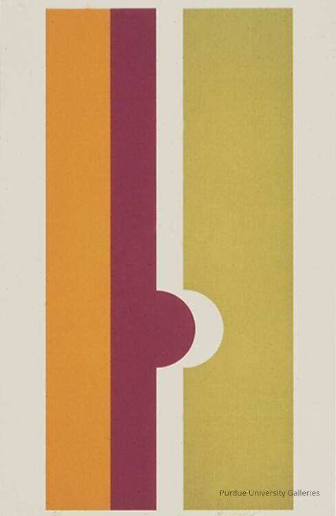 abstract serigraph of the consecutive colors; orange, magenta, white, and light olive green