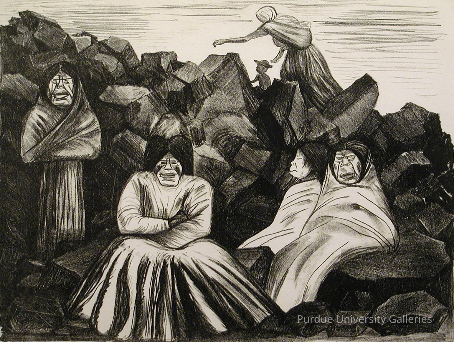 "For expressiveness, technique and inspiration, the work of José Clemente Orozco is without parallel. An original and powerful artist, his tragic view of existence is profoundly moving. He entered the Academy of Fine Arts in Mexico City in 1909. With the outbreak of the Mexican Revolution in 1910, Orozco became an active participant aligned with the supporters of Carranza. He rapidly became disenchanted with the excesses of this period and depicted them in a series of satirical drawings. From 1917 to 1922, Orozco worked in California, returning to Mexico after the establishment of a stable government. His first murals were for the National Preparatory School of San lldefonso done from 1922-27. From 1927 to 1934 Orozco worked in the United States, executing murals at Pomona College in California, the New School for Social Research in New York, and Dartmouth College. In the summer of 1932, Orozco made his only trip to Europe, visiting Paris and London and touring Spain and Italy, where he was particularly impressed by the medieval frescos. After his return to Mexico in 1934, Orozco received many mural commissions including work for the Palace of Fine Arts in Mexico City; the University, Orphanage and Government Palace in Guadalajara; and the Library in Jiquilpán. His crowning achievement is in his frescoes made in 1939 for the auditorium of the lnstituto Cabañas. Here he painted La Conquista depicting the atrocities and contradictions of the modern world.