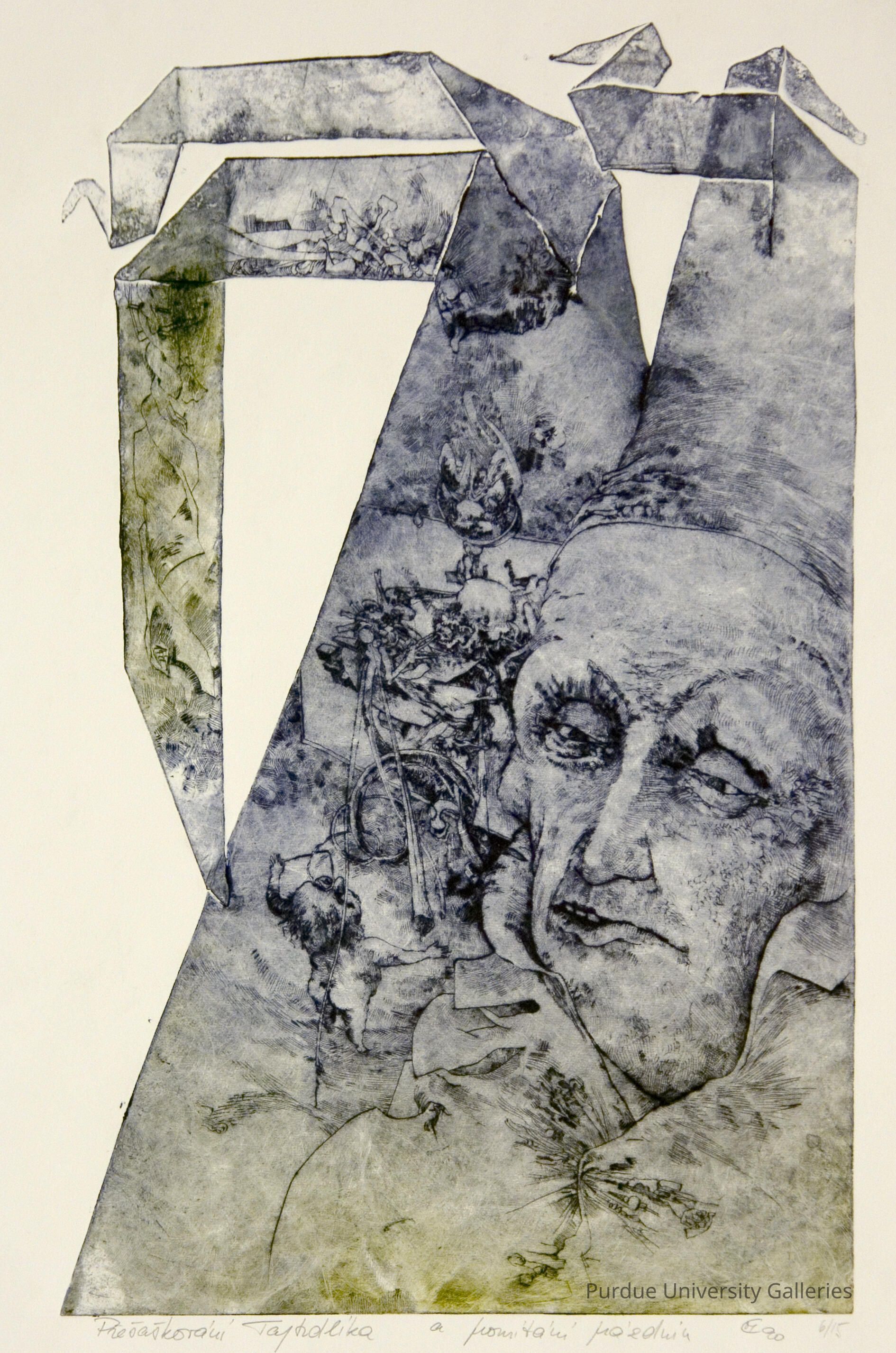 "Mikulas Cacara (German) Perestracker, 1990 Etching, 6/15 1996.30.03, Gift of Brent and Joyce Crocker"