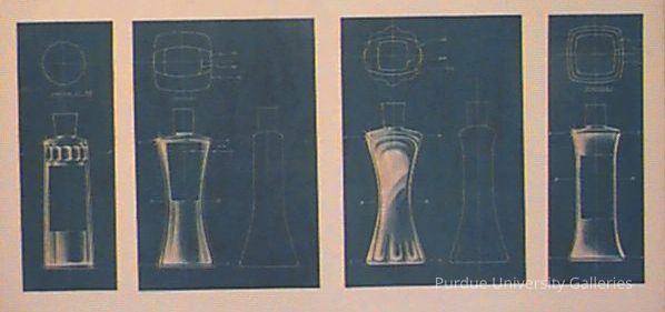 a set of designs for different perfume (or shampoo, doesn't really give much context) bottles with different contours and designsType of Drawing