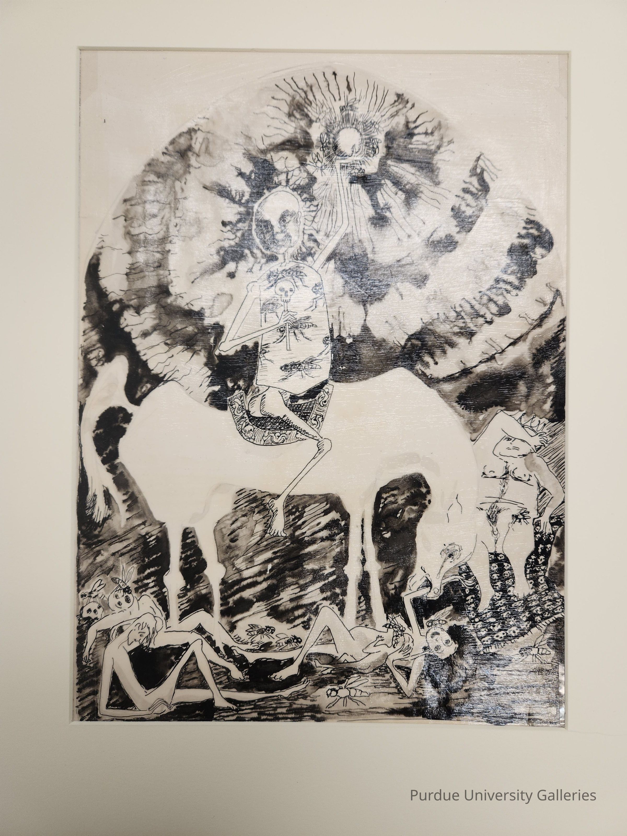 "Formerly a faculty member at Purdue, Peter Smith is now Professor Emeritus in Art Education from the University of New Mexico. In addition to writing numerous books and articles on classroom teaching, Peter has always enjoyed the creativity of actually making art in the studio. About the works in the collection he writes, ""The images from ""Revelations"" are, of course, ""The Four Horseman of the Apolypse,"" but I had been thinking of Holbein's woodcuts of the ""The Dance of Death."" The works related to ""Revelations"" have something of the nightmare (note the term) quality of the skeletal horses Butterfield has evoked in the the horses she has made out of scraps--metal, twigs, etc. I was familiar with her work even in prehistoric 1990s! ""Glory"" is a nightmare of a different whinney. It was meant to be more ironic, the military figure rides a patently false horse, the whole notion of heroics reduced to two men in a costume and a flag waving man in a doorman's outfit."""
