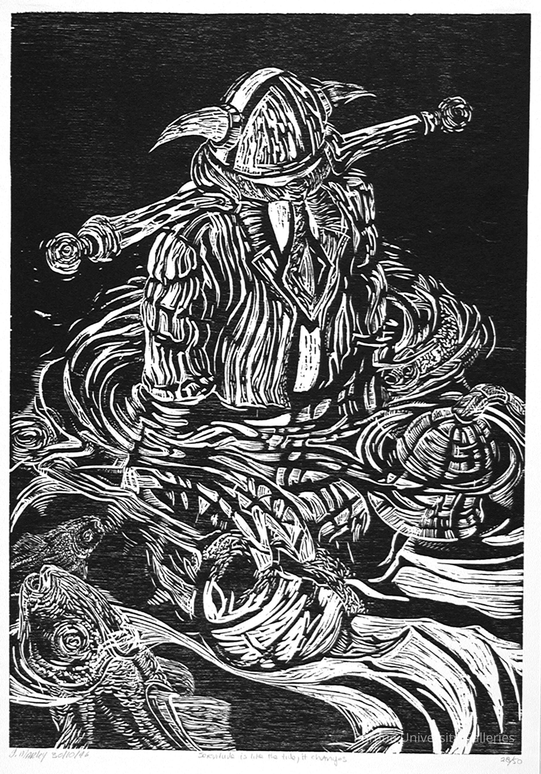 "(The Right to…) FREEDOM FROM SLAVERY, SERVITUDE AND FORCED LABOUR Ian Marley Bloemfontein/Free State woodcut “No one may be subjected to slavery, servitude or forced labour.” "