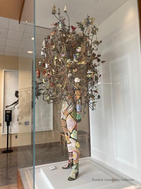 Cave has created over 500 Soundsuits in the past thirty years, many of which are in museum collections such as Crystal Bridges in Bentonville, AR; Newfields in Indianapolis, IN; the Met in New York, New York; and the Smithsonian American Art Museum in Washington D.C. Purdue University owns two on display at the entrance of Pao Hall. They were purchased with funds from the Lonsford Endowment. If you are on campus, make sure to swing by and marvel at the complexity of these works and see you next week for another Mystery Monday.