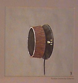 A round wooden speaker, with fake wood on the side and a switch at the center and a cord extending out from the side, the switch hovers over the word off with the words on and res on the right and left side.Type of Drawing