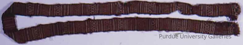 Fiber, alpaca. Bag strap woven with geometric motifs in warp faced double weave technique. Colors include browns and tans.Acquisition