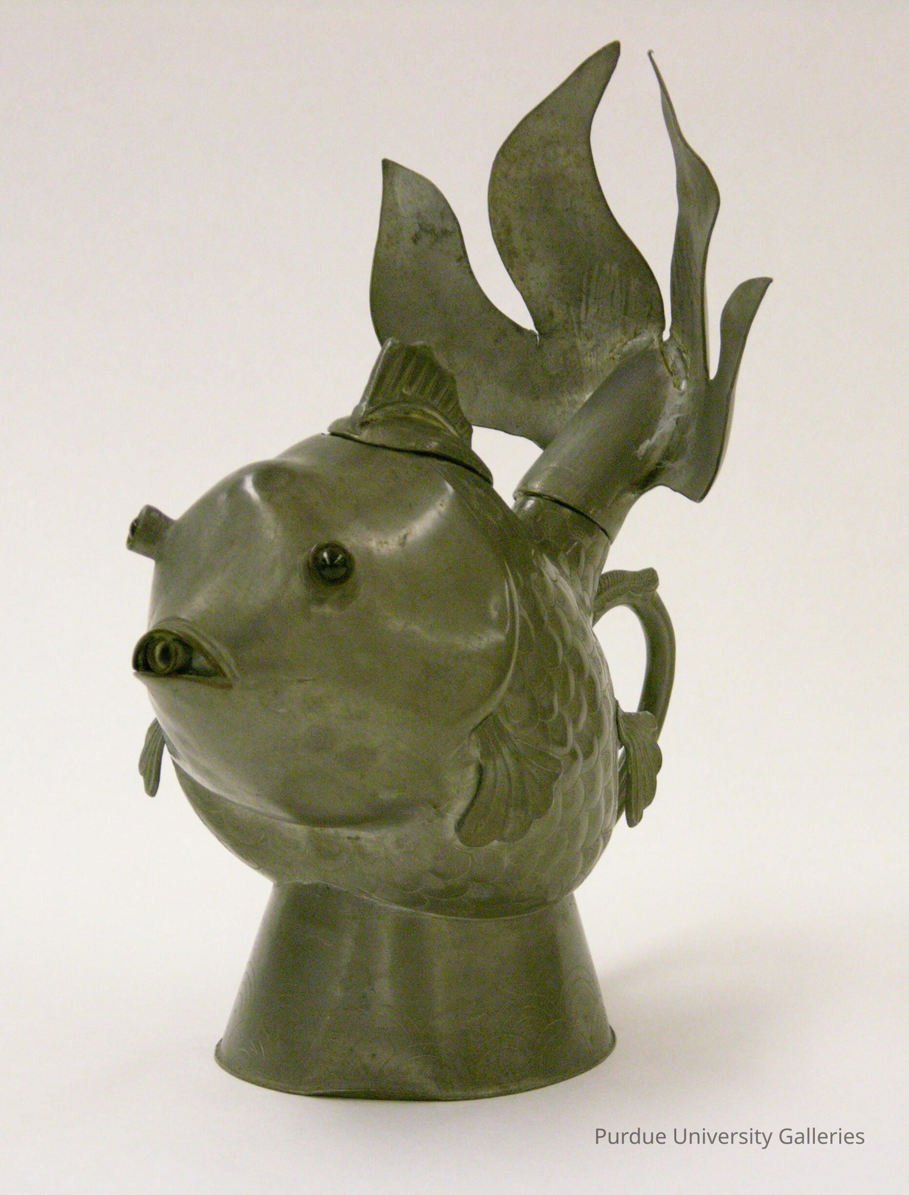 pewter teapot in shape of goldfish