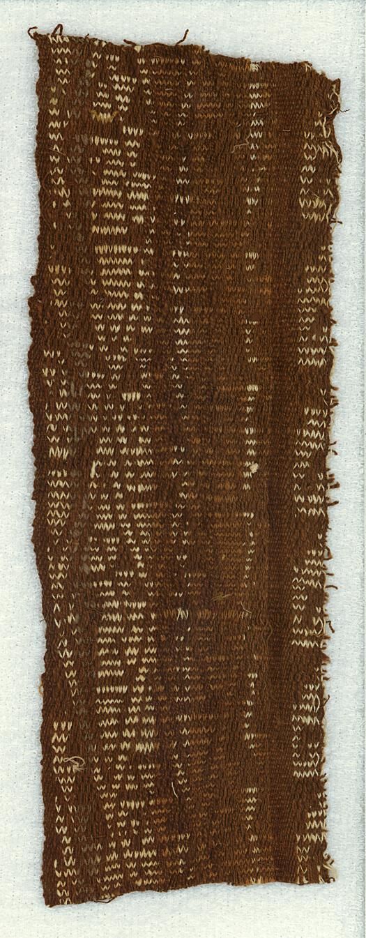 Fiber, cotton. Textile fragment with stylized bird motifs in chancay pick up technique. Colors include brown, gray, tan, and white.Acquisition
