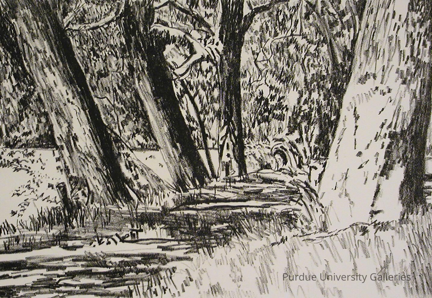 Professor emeritus Robert Reed (1922-2007) taught printmaking and drawing at Purdue from 1958 until 1987. Reed’s life works include drawing, painting, sculpture, pottery, and printmaking. He also created silver jewelry, masks, mobiles, and birdhouses.