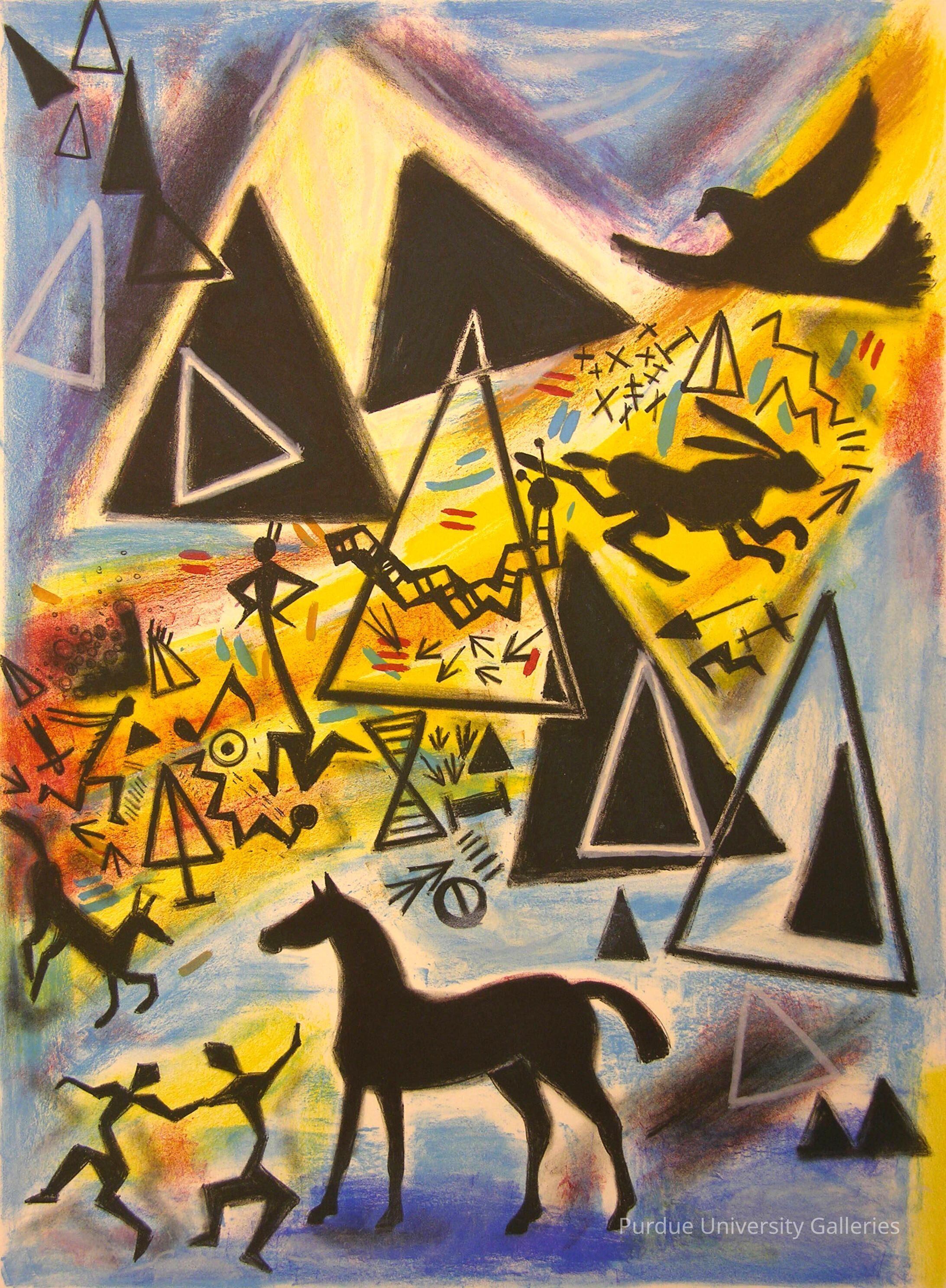 "Born on the Flathead Reservation in Montana, Jaune Quick to See Smith is one of the most acclaimed Native American artists working today. Her work is held by the Smithsonian, the Whitney, the Museum of Modern Art, the Walker, and has been reviewed by The New York Times, ArtNews, Art In America, Art Forum, The New Art Examiner and many others. Combining painting, printmaking and collage, her work uses personal and anthropologic symbols to comment on cultural appropriation and abuse. Despite the seriousness of the message, her work often comments on politics, human rights and the environment with humor. Despite her international travel and success, she continues to identify herself as a Flathead Salish member of the Confederated Salish and Kootenai Tribes."