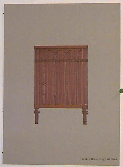 a design drawing for what might be a wooden night stand. the design itself is fairly simple with bar like designs on the front.Type of Drawing
