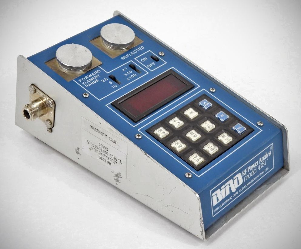 Power range of 100 mW to 10 kW using Bird plug-in elements.