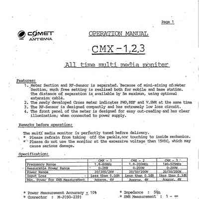 CMX-2: 150W (1.8–30MHz); 120W (Over 50MHz).