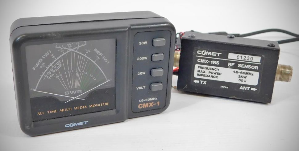 The CMX series features a cross-needle meter that simultaneously displays forward power, reflected power, and VSWR. The system is split into two parts: a compact meter section for easy viewing and a separate RF sensor designed with an extremely low-loss circuit.
