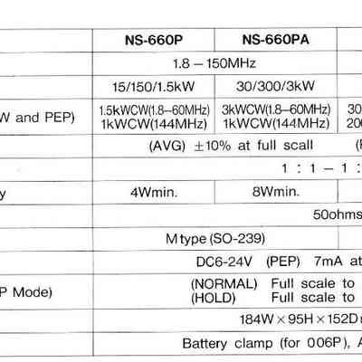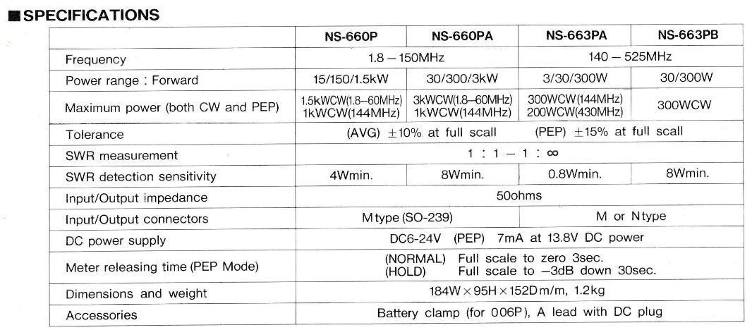 NS-663PB 140–525 MHz, 300 watts (see chart for specifics)