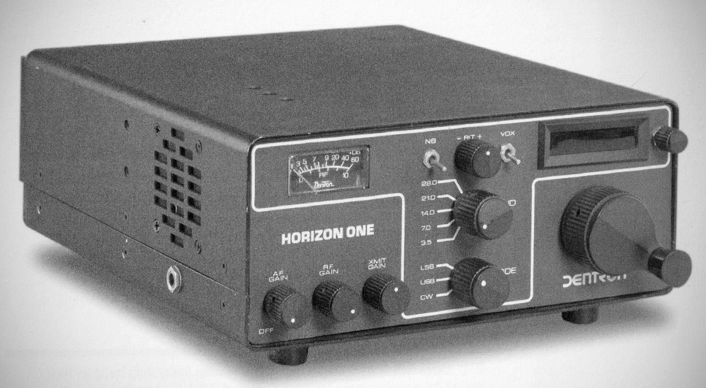 The all-solid-state Horizon One transceiver covered 80-15 meters and any 500 kHz segment of 10 meters. Power output was 100 watts on 80 through 15 meters, 80 watts on 10 meters.
