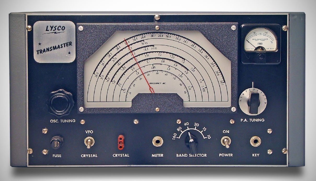 Power input with Lysco’s model 500 was 25 watts on the 160–10 meter bands. The final amplifier was an 807. It could be VFO or crystal-controlled; $87.50, 194