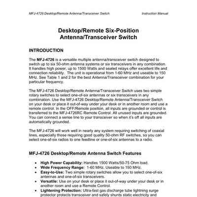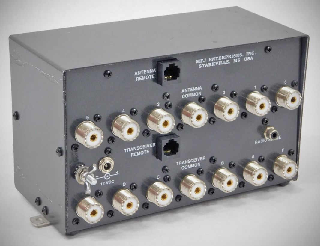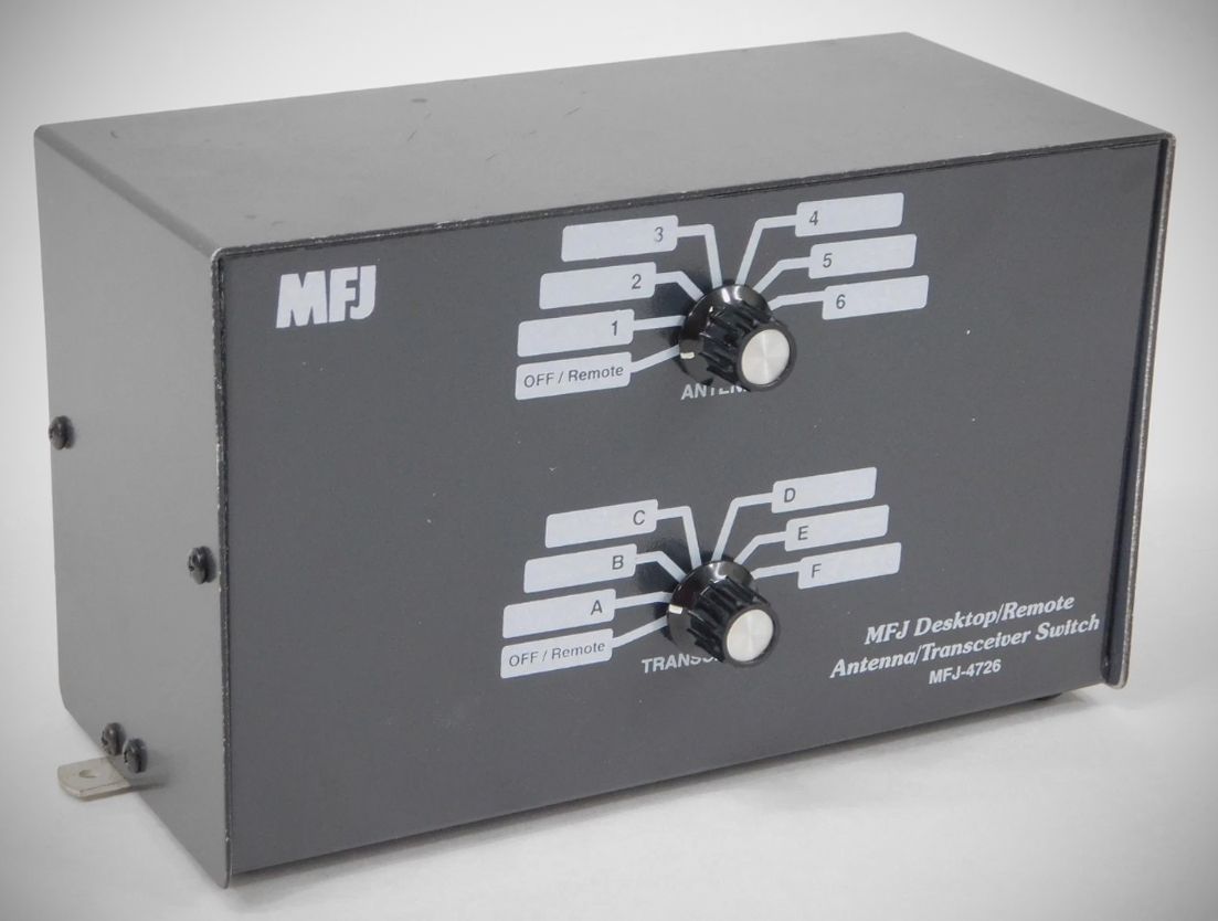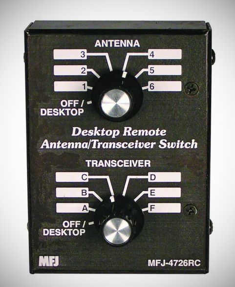 MFJ 4726 Desktop/Remote 6-Position Antenna/Transceiver Switches will work well in nearly any system requiring the switching of coaxial lines, especially those requiring good quality 50 ohm RF switches.